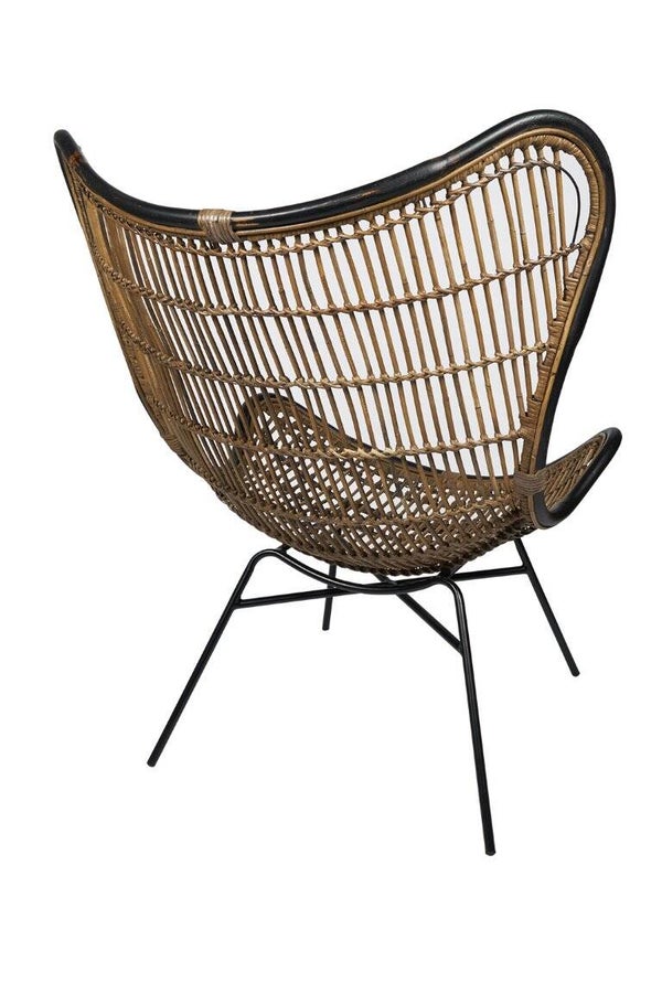 Ik ben een rotan vlinderstoel. De trendy pootjes en de mooie rondingen maken deze stoel tot een mooi item in uw interieur. De donker bruine rand maakt deze stoel apart. De rand is enigzins antiek bewerkt doordat deze hier en daar is doorgeschuurd. Ik ben dan wel nieuw maar zeker in de jaren 70 had ik het ook goed gedaan.