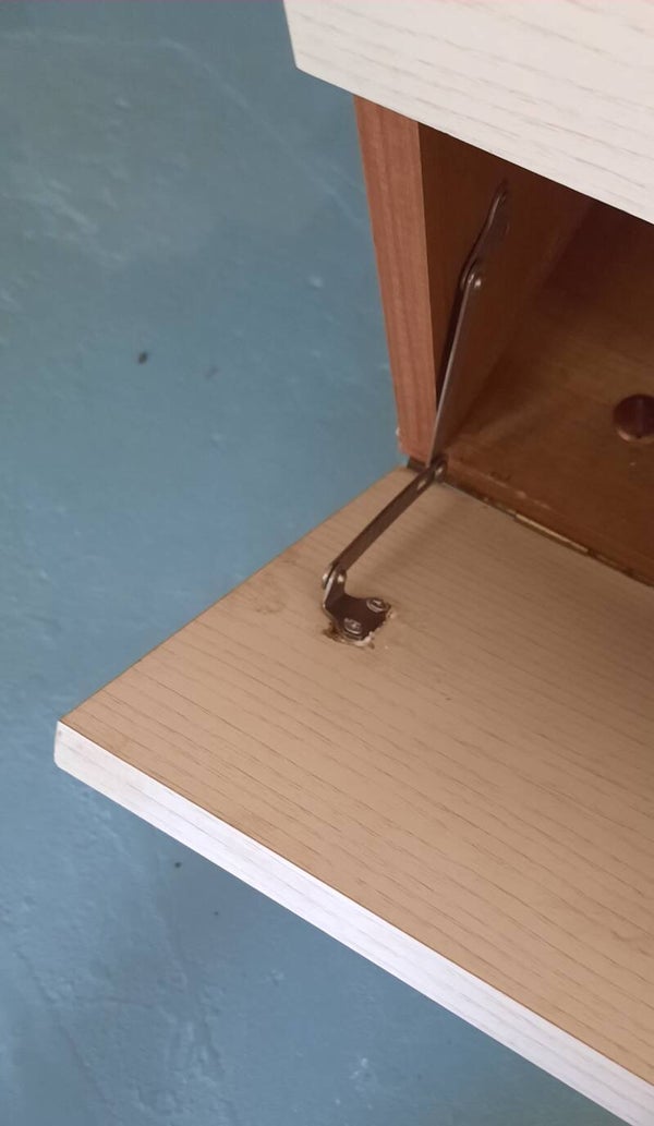 Dit originele jaren 70 kastje is een knipoog naar de tijd van oranje telefoons, wijde pijpen en zondagochtendkranten. Met zijn bruine omlijsting, witte lades en karakteristieke klep straalt dit meubel pure retro charme uit.