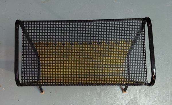 Pilastro bijzettafeltje / letuurbak. Geperformeerd metaal. Typische vormgeving en kleurstelling uit de jaren 50.