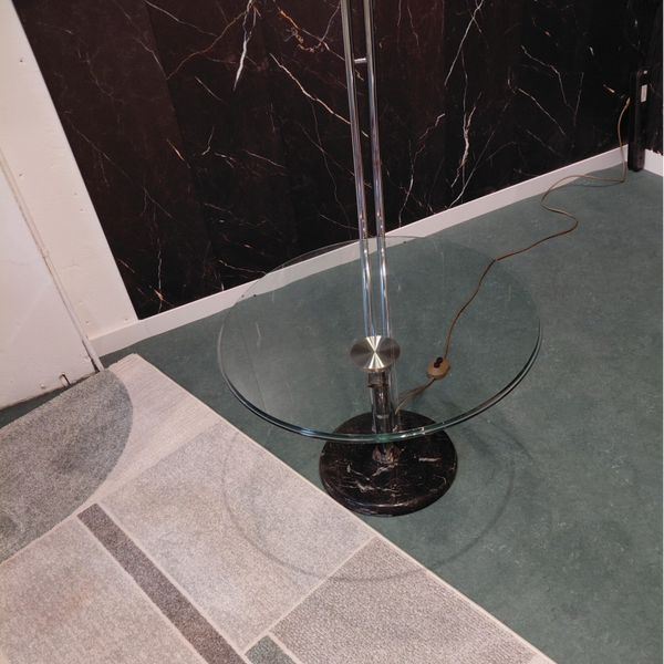 Deens design Okländ model 648 lamp met glazentafel en zwart marmer voet. Glasplaat heeft lichte krasjes.