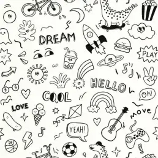 Ben je gek op tekenfilms? Dan is deze decoratie echt iets voor jou! Elk ontwerp van dit behang is getekend met de kenmerkende potloodlijnen van tekenfilms. Het is vrij minimalistisch, maar misschien wel een van de meest 'levendige' ontwerpen, omdat het verkrijgbaar is in een versie die al is ingekleurd, of een versie die je zelf kunt inkleuren met uitwisbare viltstiften om helemaal opnieuw te beginnen.